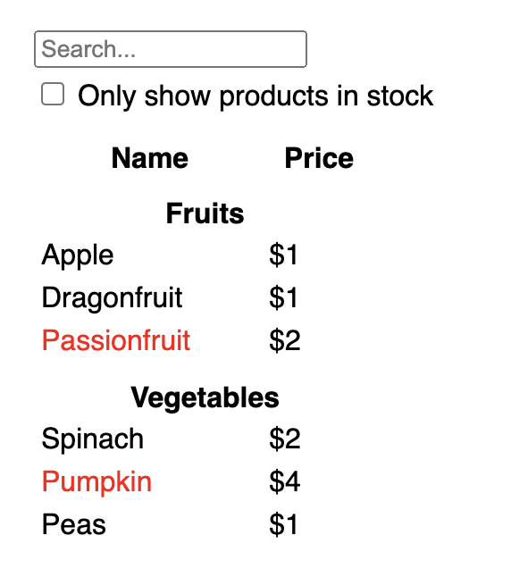 <input type="checkbox" checked={inStockOnly} /> Only show products in
